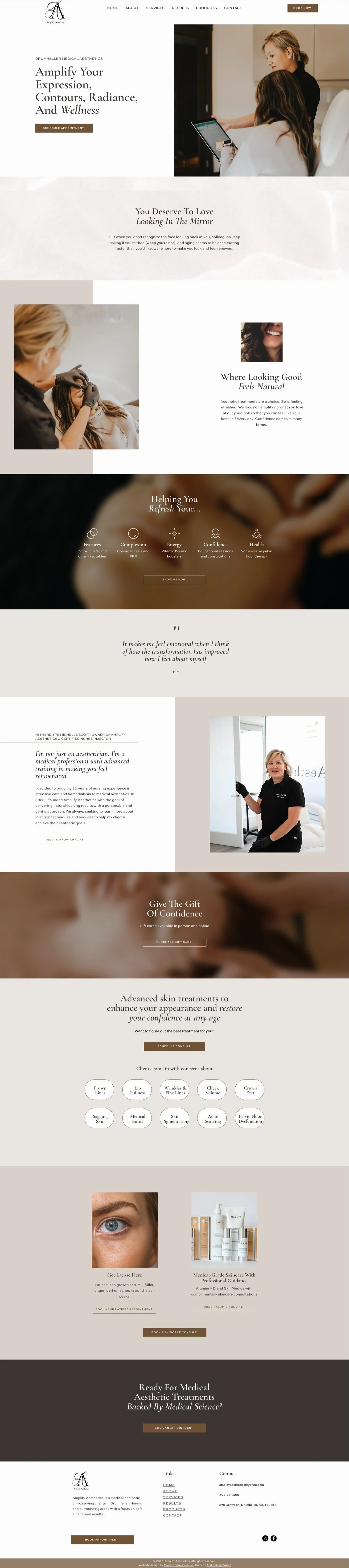 Michelle, a skilled cosmetic nurse serving Drumheller and Hanna, Alberta, came to Modern Form Creative with a DIY website and visual brand that no longer reflected the quality of her work. She wanted a site she could feel proud of — one that felt elevated, inviting, and built trust with potential clients. Our goal was to refine her visuals and bring her online presence up to the same standard as her in-person experience.